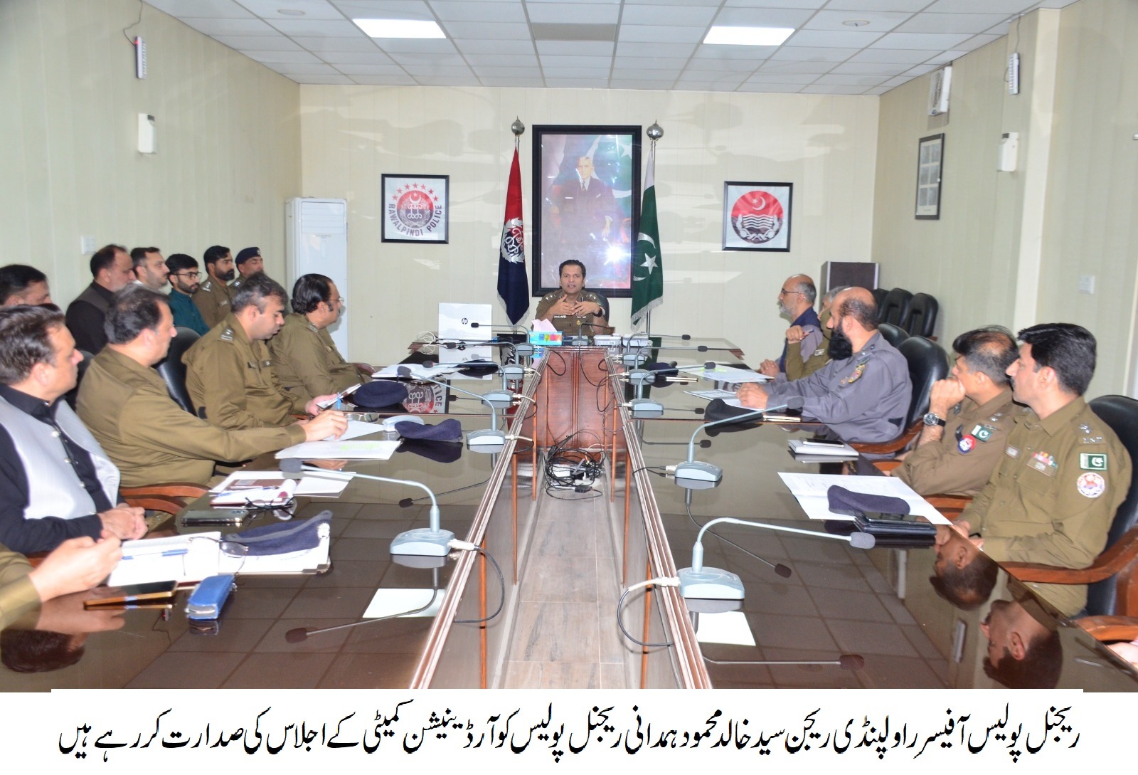 راولپنڈی (اردو ٹائمز) ریجنل پولیس آفیسر سیدخالد محمود ہمدانی کی زیر صدرات ریجنل پولیس کوآرڈینیشن کمیٹی کاپولیس لائنزہیڈکوارٹرز میں ماہانہ اجلاس، اجلاس میں راولپنڈی ریجن کے تمام ضلعی پولیس افسران کی بذریعہ ویڈیو لنک اور دیگرتمام یونٹ ہیڈز کی براہ راست شرکت،راولپنڈی ریجن میں امن و اماندیگر غیر ملکی شہریوں کی سیکیورٹی مزید مؤثر بنائی جائے،رمضان المبارک کے دوران نماز تراویح، عبادات اور بازاروں میں خریداری کے لیے خصوصی سیکیورٹی و ٹریفک انتظامات کو یقینی بنایا جائے،کمپلینٹ پورٹل پر موصول شکایات پر فوری ایکشن اور ازالہ یقینی بنایا جائے،شہریوں کے جان و مال کا تحفظپولیس کی اولین ترجیح ہے،موجودہ ملکی صورتحال کے پیش نظر راولپنڈی ریجن پولیس کسی بھی ناگہانی صورتحال سے نمٹنے کے لیے ہمہ وقت الرٹ ہے،