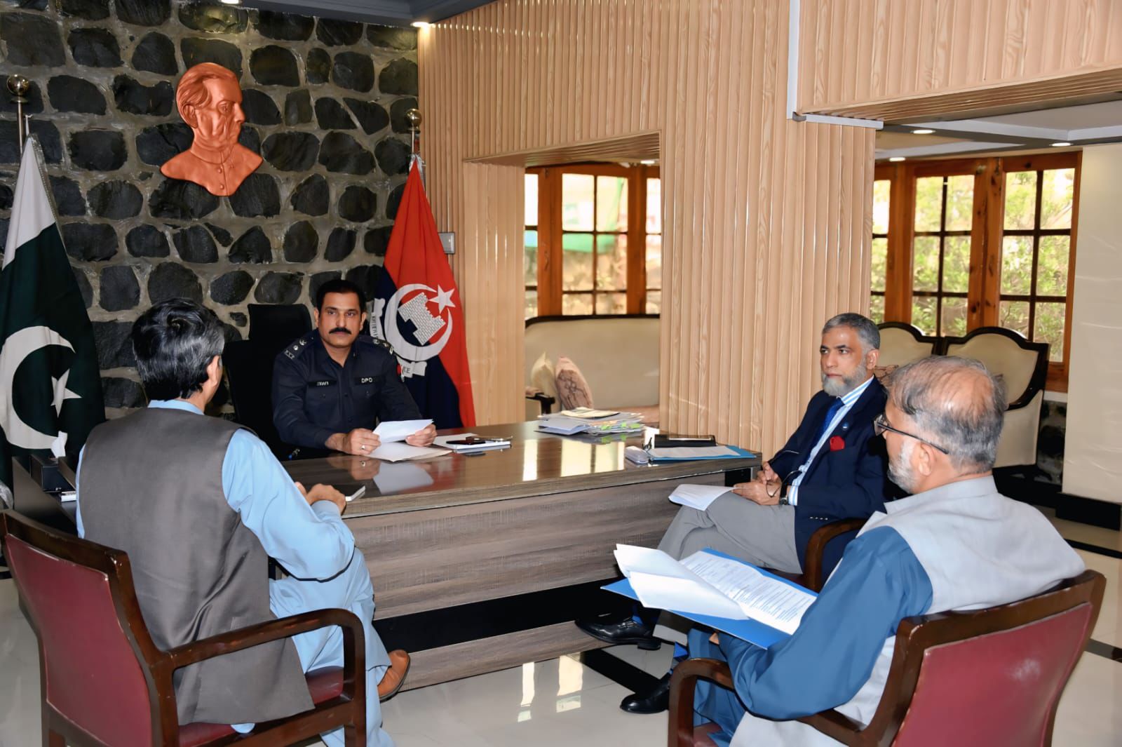 ہری پور (اردو ٹائمز) ڈی پی او ہری پور کی ہائیڈرو پاور پراجیکٹ ٹی فائیو کے مینجمنٹ ڈائریکٹر ،پراجیکٹ ڈائریکٹر،ڈائریکٹر سکیورٹی سے میٹنگ.-