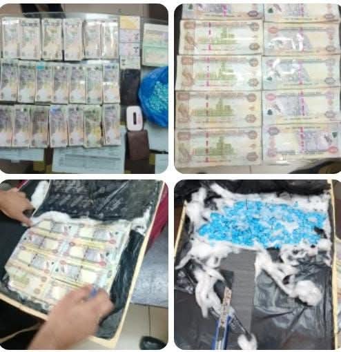 دورانِ تلاشی بیگ سے مجموعی طور پر -/4,41,000 یو اے ای درہم برآمد ہوئے، جن کی مالیت تقریباً 3 کروڑ 35 لاکھ پاکستانی روپے بنتی ہے۔ علاوہ ازیں، بیگ سے 544 گرام نشہ آور گولیاں (“ڈانسنگ پلز”) بھی برآمد کی گئیں۔