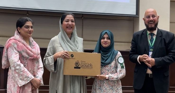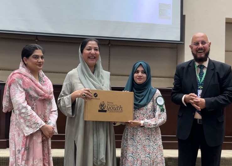 اسلام آباد (اردو ٹائمز) وفاقی اردو یونیورسٹی کی ہونہار طالبہ عائشہ بنت مسعود نے بی ایس سافٹ ویئر انجینئرنگ کے پروگرام میں نمایاں کامیابی حاصل کرتے ہوئے اعلیٰ پوزیشن اپنے نام کی۔ اس شاندار کارکردگی کے اعتراف میں انہیں پرائم منسٹر لیپ ٹاپ اسکیم کے تحت لیپ ٹاپ سے نوازا گیا۔اس موقع پر وزیرِ مملکت برائے وفاقی تعلیم و پیشہ ورانہ تربیت مس وجہیہ قمر نے عائشہ بنت مسعود کو لیپ ٹاپ پیش کیا اور ان کی محنت، لگن اور تعلیمی صلاحیتوں کو سراہا۔اس موقع پروفاقی اردویونیورسٹی کے وائس چانسلرضابطہ خان شنواری بھی موجود تھے۔وزیر مملکت نے اس امید کا اظہار کیا کہ عائشہ بنت مسعود مستقبل میں بھی اسی جذبے کے ساتھ کامیابیاں حاصل کرتی رہیں گی اور ملک و قوم کا نام روشن کریں گی۔
