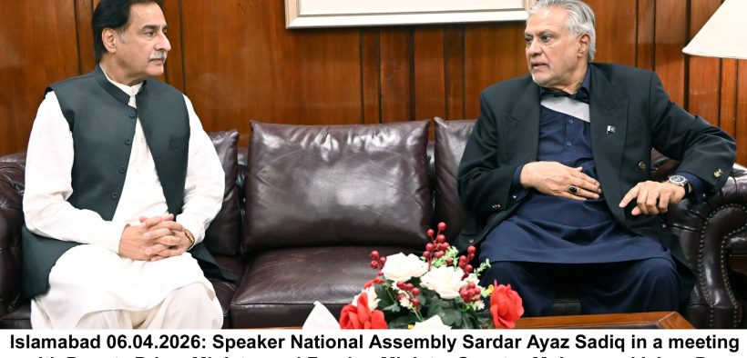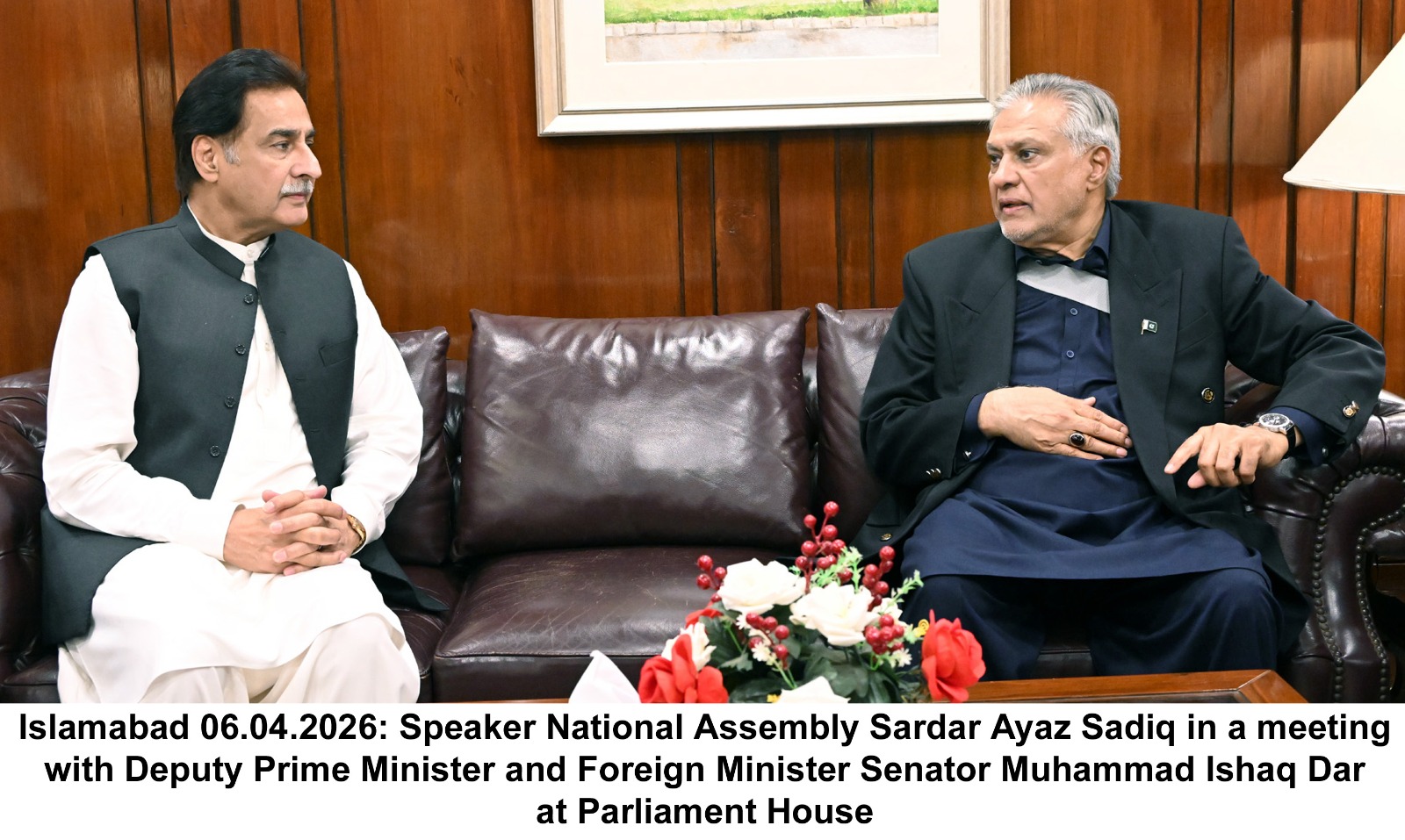 اسلام آباد (اردو ٹائمز) اسپیکر قومی اسمبلی کی اسحاق ڈار سے ملاقات،خطے کی صورتحال پر تبادلہ خیال ۔۔۔۔۔۔۔
