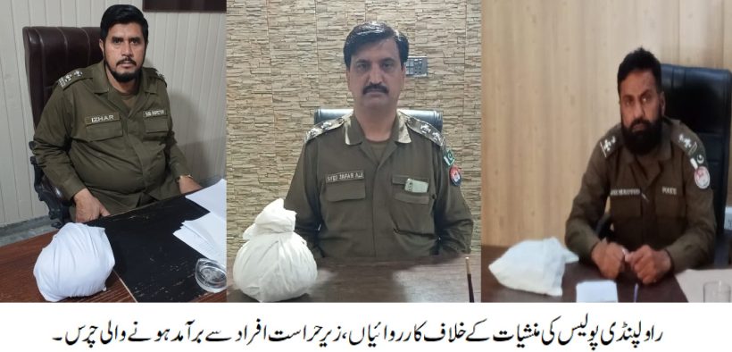 راولپنڈی (اردو ٹائمز) سی پی او سید خالد محمود ہمدانی کی ہدایت پر راولپنڈی پولیس کی منشیات کے خلاف کارروائ