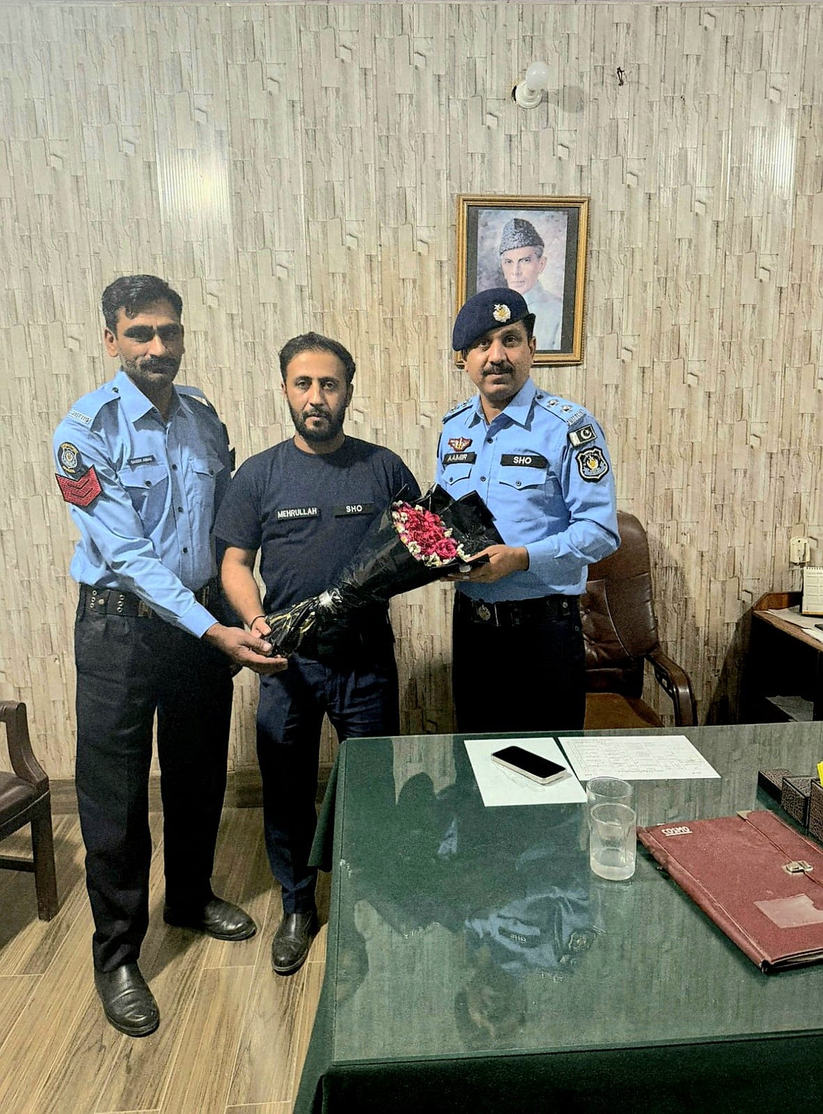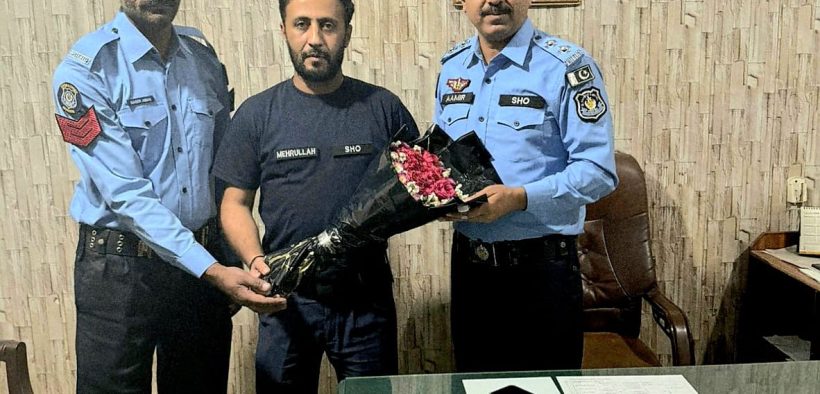 اسلام آباد (اردو ٹائمز) تھانہ کورال میں نئے تعینات ایس ایچ او عامر حیات کی آمد پر خوشگوار ماحول دیکھنے میں آیا، جہاں نائٹ محرر قیصر عباس نے انہیں پھولوں کا گلدستہ پیش کیا اور خوش آمدید کہا۔