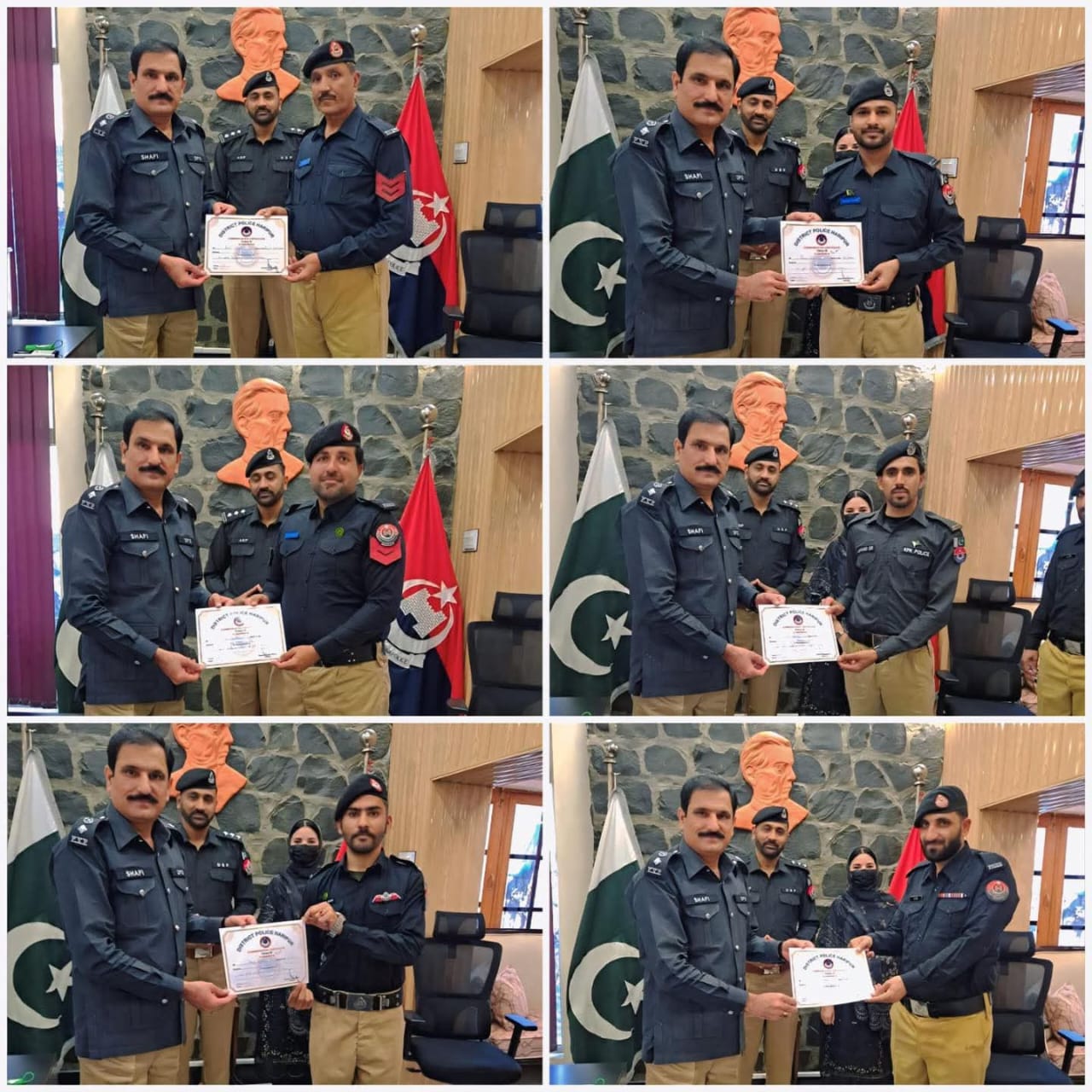 ہری پور (اردو ٹائمز) ڈی پی او ہری پور شفیع اللہ گنڈاپور نے ڈی ایس پی سرکل صدر محمد عارف کی زیر نگرانی آن لائن ایف آئی آر میں ضلع بھر میں نمایاں کارکردگی کا مظاہرہ کرنے والے سرکل صدر اور تھانہ سٹی ، تھانہ سرائے صالح،تھانہ غازی اور تھانہ ناڑہ آمازئی کے پولیس افسران ،جوانوں اور لیڈی پولیس کو تعریفی سرٹیفکیٹ دیے ۔